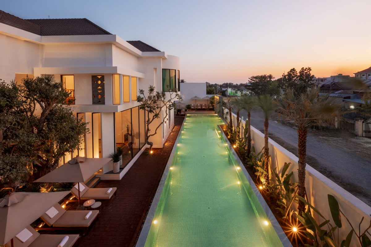 The large 2 silver-tiled swimming pools lush tropical greenery, scattered around the hotel area for the residents to enjoy relaxing oasis, pool retreats under the sun. The swimming pool is 1.45m depth, children of all ages must be accompanied by an adult.